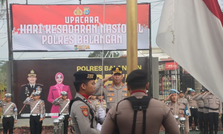 Polres Balangan, Polda Kalsel – Kepolisian Resor (Polres) Balangan menggelar Upacara Kesadaran Nasional Tahun 2026 tingkat Polres Balangan pada Senin pagi (19/1/2026). Kegiatan berlangsung khidmat di Lapangan Apel Polres Balangan, dimana upacara dipimpin langsung oleh Kapolres Balangan, AKBP Dr. Yulianor Abdi, S.H.,S.I.K.,M.H. selaku Inspektur Upacara. Turut hadir Wakapolres Balangan, para Pejabat Utama (PJU) Polres Balangan, para Kapolsek jajaran, perwira, bintara, hingga ASN Polres Balangan sebagai peserta upacara.Rangkaian upacara diawali dengan penghormatan pasukan, pengibaran Bendera Merah Putih, mengheningkan cipta, pembacaan teks Pancasila, pengucapan Tri Brata dan Catur Prasetya, Amanat serta diakhiri dengan pembacaan doa. Seluruh rangkaian berlangsung tertib dan penuh makna sebagai refleksi pengabdian anggota Polri kepada bangsa dan negara.Dalam amanatnya, Kapolres Balangan membacakan amanat Kapolda Kalimantan Selatan yang berisi tentang analisa dan evaluasi secara umum terkait situasi Kamtibmas pada tahun 2024 berbanding 2025. Melalui Upacara Kesadaran Nasional ini, Polres Balangan menegaskan komitmennya untuk terus meningkatkan profesionalisme, soliditas, serta pelayanan yang humanis demi terwujudnya situasi kamtibmas yang aman dan kondusif di Kabupaten Balangan.